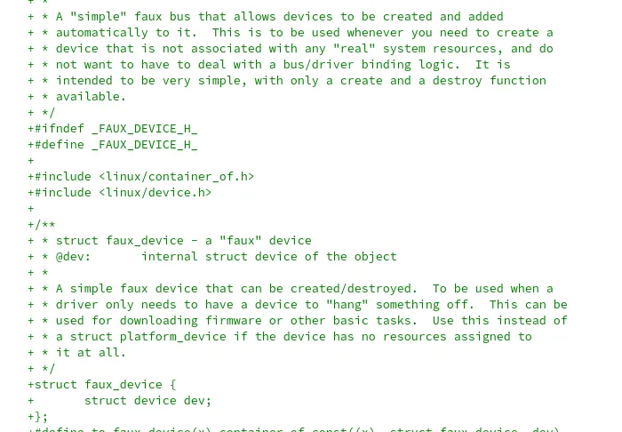 - 拉取请求链接有 Greg Kroah - Hartman 对 Faux Bus 的进一步解释。
